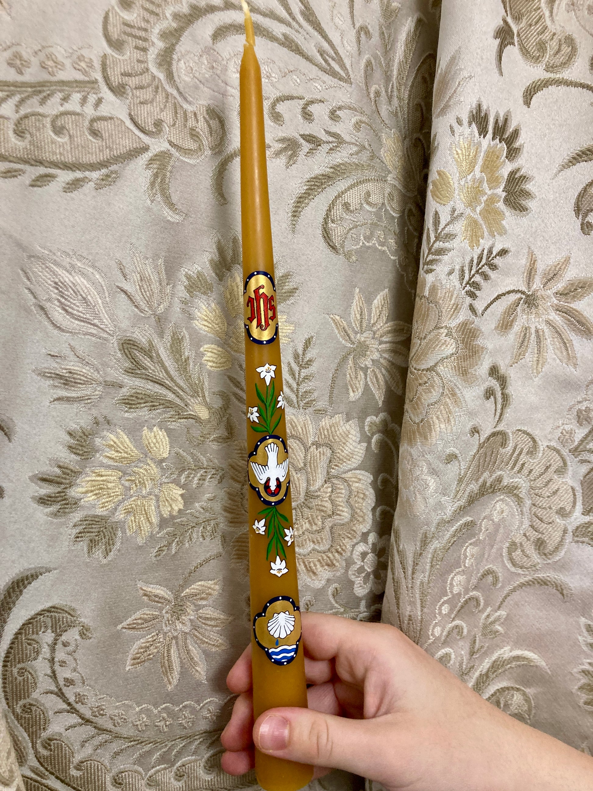 I bought a baptism taper for my grandson’s baptism 2 years ago. I received my granddaughter’s taper yesterday and can’t wait to give it to her at her baptism in October. So beautiful. What a treasure!
